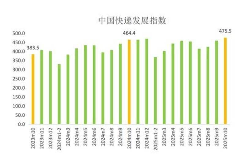 10月中国快递发展指数为475.5,国庆、中秋假期日均处理快递包裹超9亿件